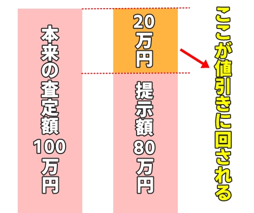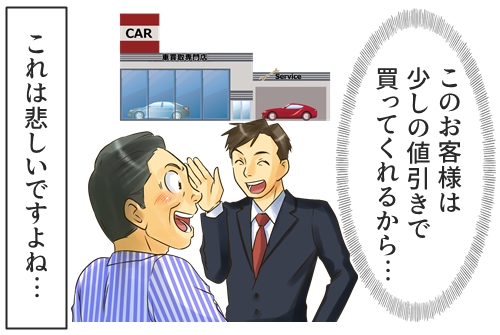 値引きにうるさいお客さんは多いけど、意外と下取りには無知な人が多い。だから本当は100万円くらいの査定の車に80万円といっておいて、20万円の余裕を作る。