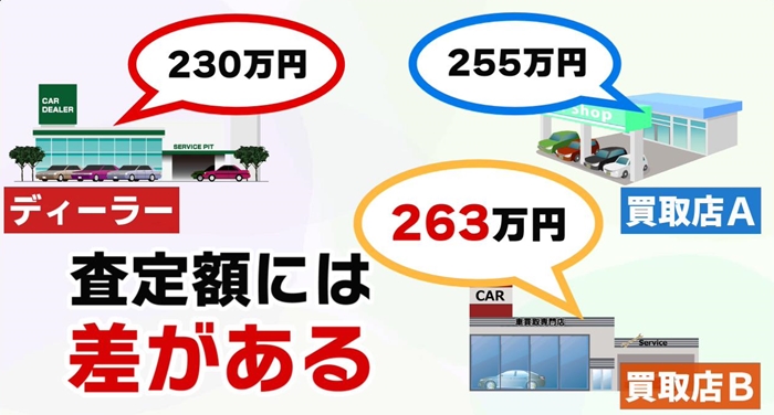 もちろん、買取店の査定額が高いとか、ディーラーが安いとかの話ではありません。