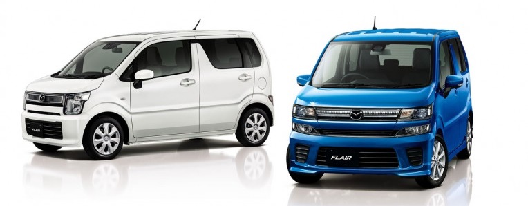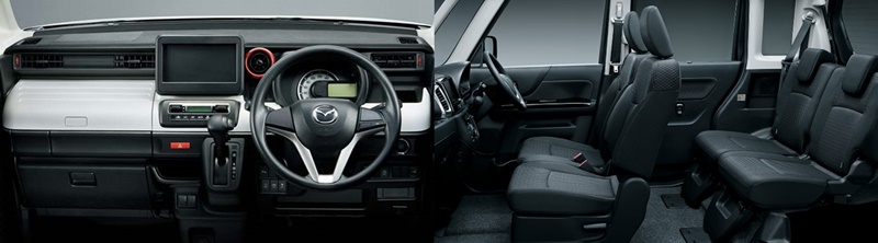AZ-ワゴンの車名から改名したフレア。全車種ハイブリッド、デュアルセンサーブレーキサポートが標準装備です。