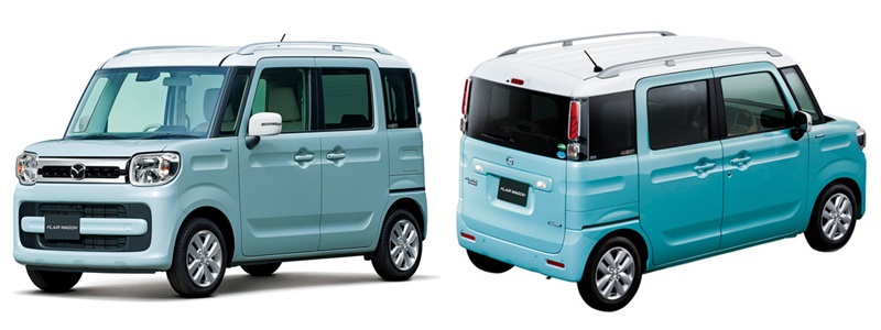 スズキのスーパーハイトワゴンで、スペーシアのOEMモデルであるマツダ・フレアワゴン。シンプルでノーマルなフレアワゴン以外に、アクティブな「タフスタイル」と、クールな見た目の「カスタムスタイル」の3つのタイプが用意されています。
