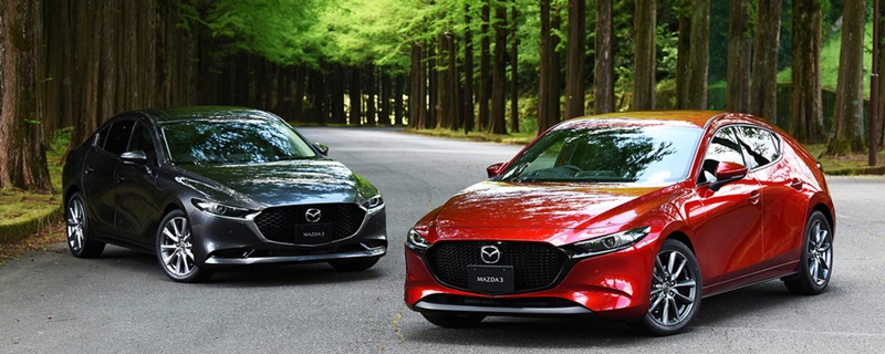 アクセラスポーツの後継機種となるMAZDA3。「セダン」とハッチバックタイプの「ファストバック」用意されています。