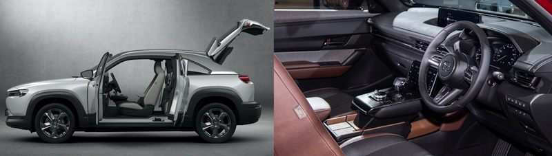 マツダが2020年10月8日に発売した最新モデルのMX-30。ハイブリッドと2.0L直列4気筒DOHCエンジン「SKYACTIV-G」を組み合わせた「e-SKYACTIV G」を搭載したコンパクトSUVです。1月28日にはEVモデルも誕生しました。