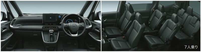 トヨタのミドルサイズミニバンとして不動の地位を誇るノアは、2022年1月にフルモデルチェンジしました。ボディサイズは全車3ナンバー。7人乗り仕様の2列目シートにはキャプテンシートを採用し、クラス初のオットマンシートにヒーターや、折りたたみ式サイドテーブルなどを装備。ロングスライド可能なシートは空間が広く取れ、使い勝手も向上しています。